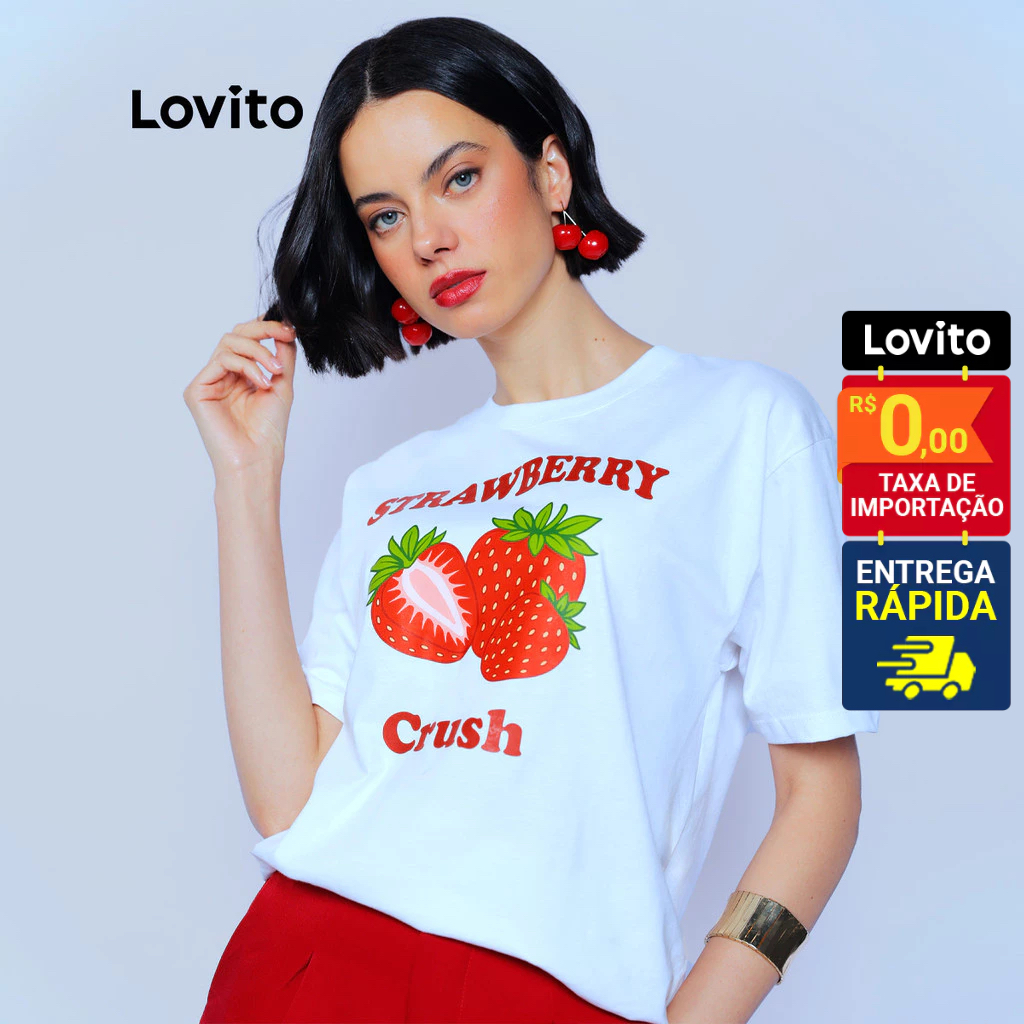 Lovito Camiseta Feminina Basica Casual Estampa de Morango TSB1401BRL1431