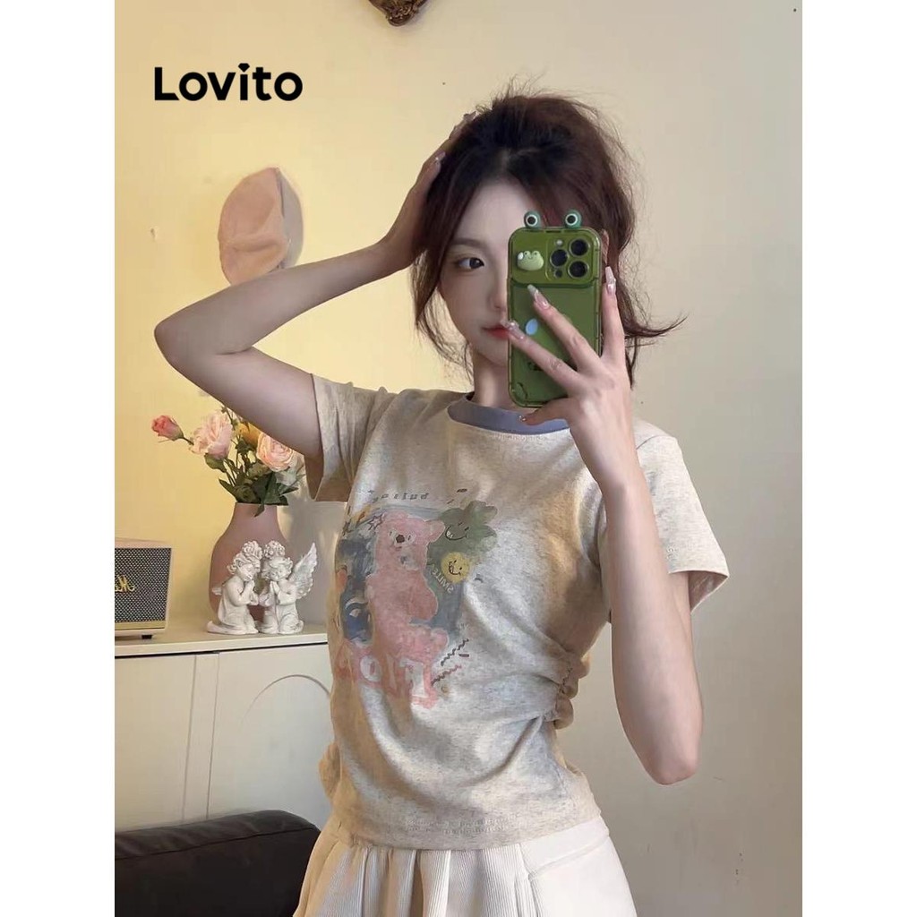 Lovito Camiseta Feminina Casual Estampada Cartoon LNA65286