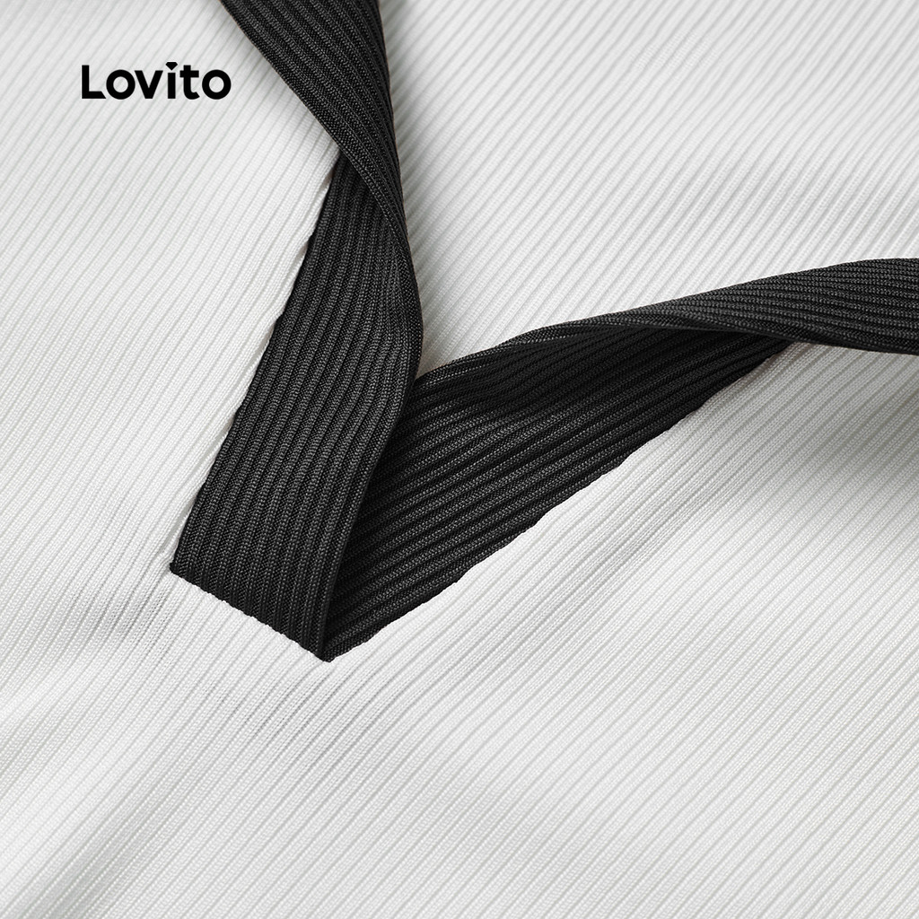 Lovito Camiseta Feminina De Primavera E Verão Casual Com Patchwork Gola Contrastante E Tecido Texturizado L121AD1107