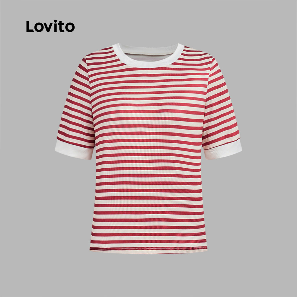 ✅DESTAQUES -❤️Cores contrastantes -❤️Lazer -❤️Confortável mas elegante -❤️Boa Textura -❤️Primavera e verão ✅DESCRIÇÕES Estampa / Padrão:Listrado Estilo:Elegante Tamanho Plus:Não Material:Poliéster Composição:95% poliéster + 5% elastano Tipo de modelagem:Regular Fit Transparência:Não Esticar:Alta elasticidade Feito na China ✅O PACOTE INCLUI 1XCamiseta ✅INTRODUÇÃO LOVITO A Lovito é uma marca em crescimento que acredita no poder das meninas. Estamos comprometidos em oferecer opções de roupas fashion e acessíveis, para todos os estilos, necessidades e identidades. Acreditamos que a moda deve ser divertida, liberadora e fazer você se sentir incrível. Afinal, o melhor acessório para qualquer look é a autoconfiança! ✅NOTAS DE COMPRA Antes de comprar, dê uma olhadinha na tabela de medidas disponível no site. Lembre-se de que, por serem feitas manualmente, as medidas podem variar de 1 a 2 cm. As cores dos produtos também podem ter pequenas diferenças em relação às fotos, dependendo da iluminação e das configurações do seu dispositivo. Siga nossa loja e conheça novos itens e as melhores ofertas para você!! Se você tiver alguma dúvida, converse conosco e responderemos o mais rápido possível.😊