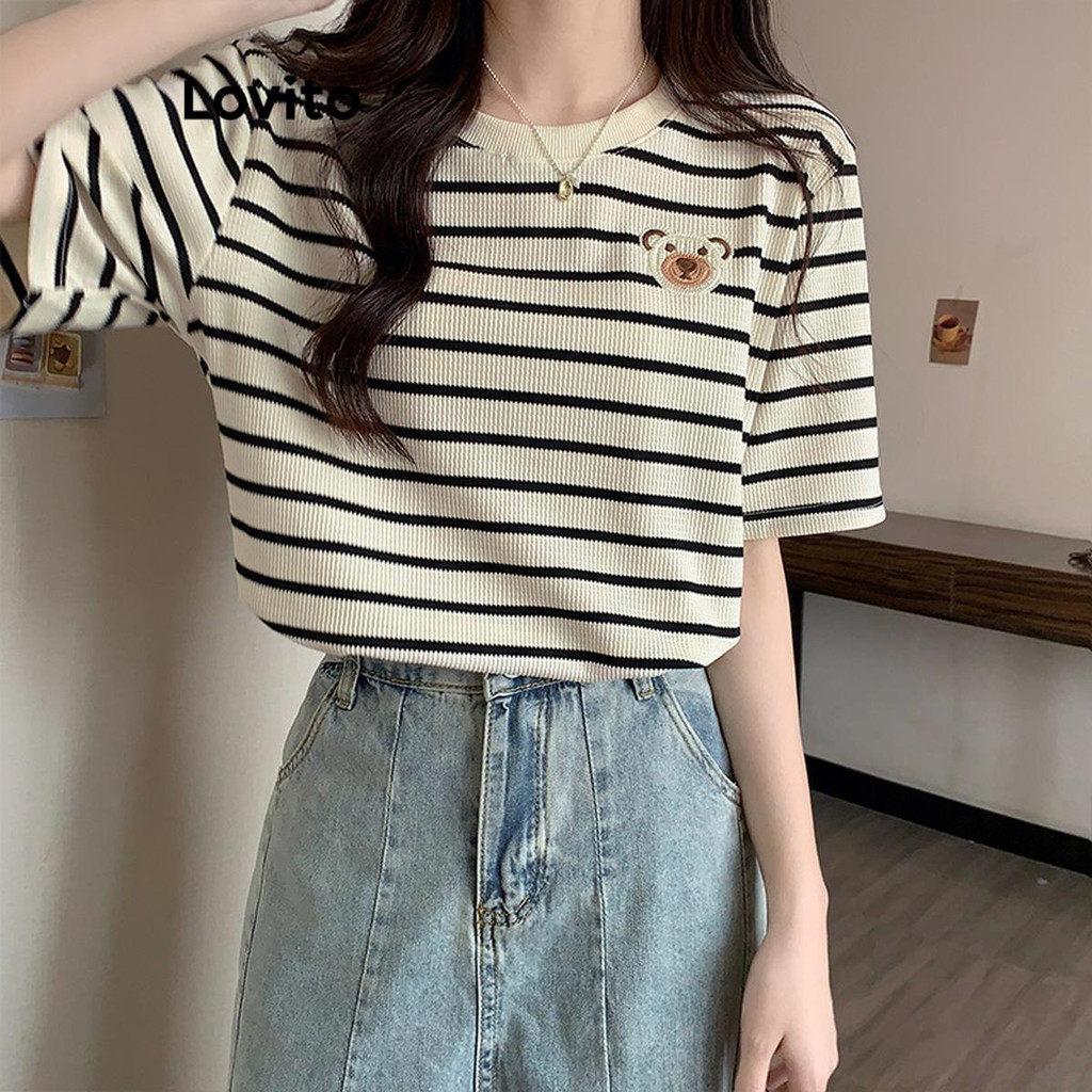 Lovito Camiseta Feminina Listrada Casual LNE38190 (damasco)