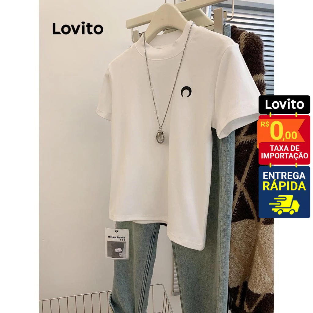 ✅DESTAQUES -❤️Bordado -❤️Macio E Confortável ✅DESCRIÇÕES Padrão: Lua Estilo: Casual Mais Tamanho: Não Material: Poliéster Composição: 95%Poliéster +5%Spandex Tipo Fit: Ajuste Regular Transparente: Não Esticamento: Esticamento Médio Região Da Origem: País Da Brasil ✅PACOTE INCLUI 1X Camiseta ✅APRESENTAÇÃO DO LOVITO Lovito é uma marca emergente que acredita no poder das meninas, comprometida com a oferta de escolhas de roupas elegantes e acessíveis para diferentes estilos, necessidades e identidades. Nós acreditamos que a moda deve ser divertida, liberadora e você sentemos ótimos. Depois de todos, o melhor acessório para qualquer aspecto é de autoconfiança. ✅NOTAS DE COMPRA Compare suas medidas com nossa tabela disponível no site. Lembre-se de que, por serem feitas manualmente, as medidas podem variar de 1 a 2 cm. As cores dos produtos também podem ter pequenas diferenças em relação às fotos, dependendo da iluminação e das configurações do seu dispositivo. Siga nossa loja e conheça novos itens e as melhores ofertas para você!! Se você tiver alguma dúvida, converse conosco e responderemos o mais rápido possível.😊