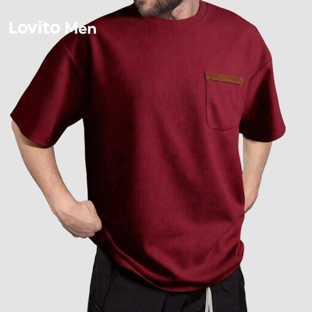 Lovito Camiseta Masculina Casual Para Festa Plissada Vermelha Para Primavera/verão L169ED024