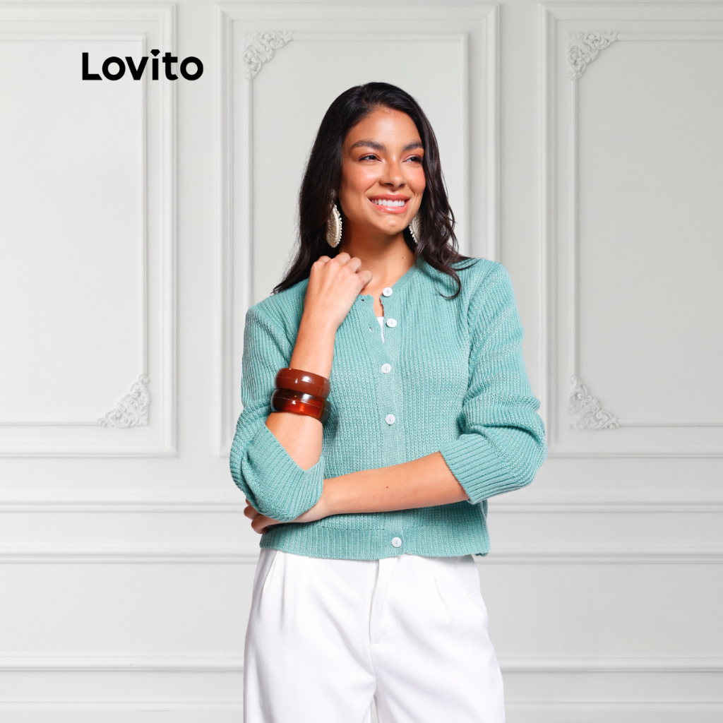 Lovito Cardigan Tricot Outono Inverno Botoes Moda Casual Feminina BRCDB1416BRL1446