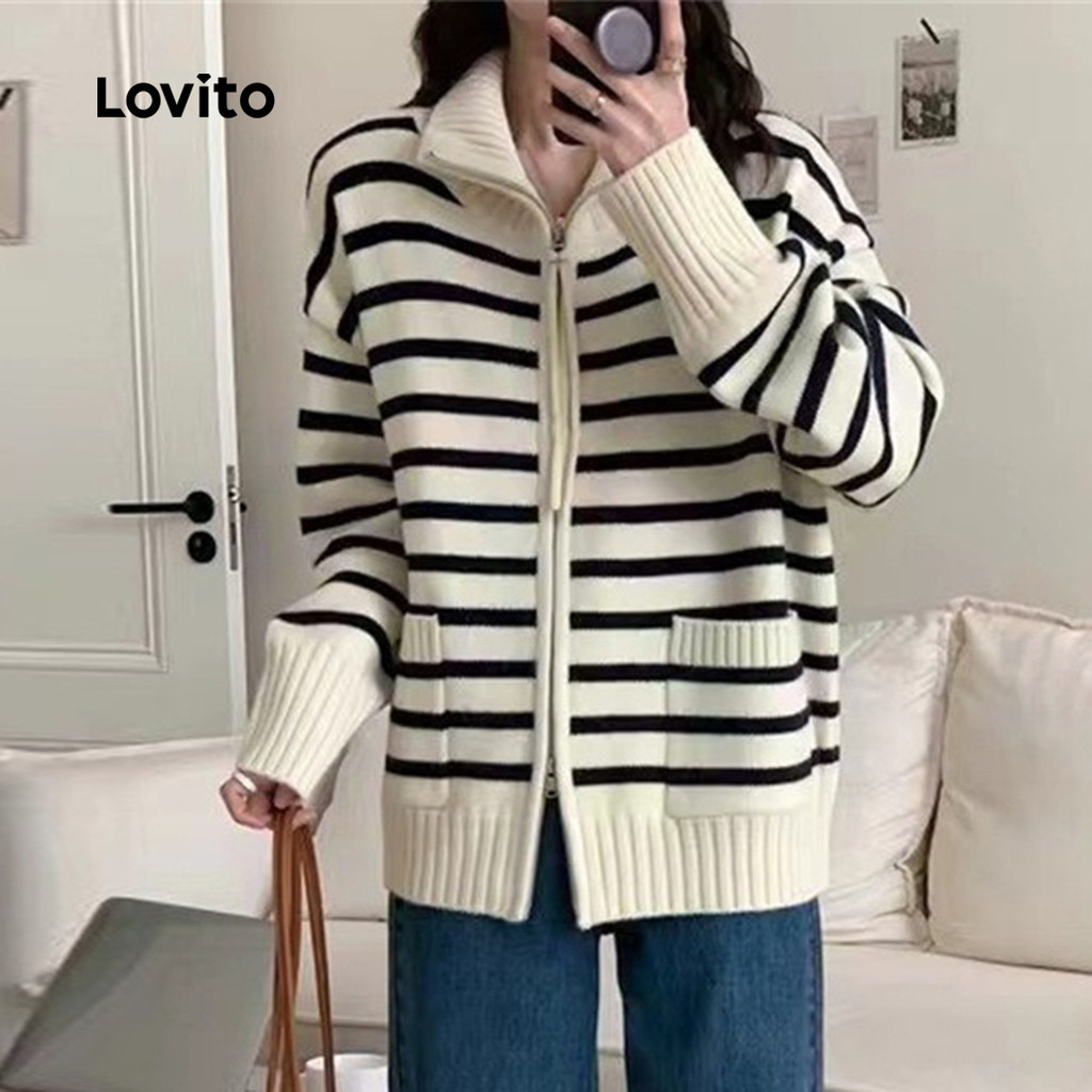 ✅DESTAQUES -❤️Zíper -❤️Padrão -❤️Lazer -❤️Macio e confortável -❤️outono e inverno ✅DESCRIÇÕES Estampa / Padrão: Listrado Estilo:Casual Tamanho Plus:No Material: Poliéster Composição:95%Polyester+5%Spandex Tipo de modelagem: Portuguese. Solto Transparência:No Esticar:Slight Stretch Feito na China ✅O PACOTE INCLUI 1XCardigãs ✅INTRODUÇÃO LOVITO A Lovito é uma marca em crescimento que acredita no poder das meninas. Estamos comprometidos em oferecer opções de roupas fashion e acessíveis, para todos os estilos, necessidades e identidades. Acreditamos que a moda deve ser divertida, liberadora e fazer você se sentir incrível. Afinal, o melhor acessório para qualquer look é a autoconfiança! ✅NOTAS DE COMPRA Antes de comprar, dê uma olhadinha na tabela de medidas disponível no site. Lembre-se de que, por serem feitas manualmente, as medidas podem variar de 1 a 2 cm. As cores dos produtos também podem ter pequenas diferenças em relação às fotos, dependendo da iluminação e das configurações do seu dispositivo. Siga nossa loja e conheça novos itens e as melhores ofertas para você!! Se você tiver alguma dúvida, converse conosco e responderemos o mais rápido possível.