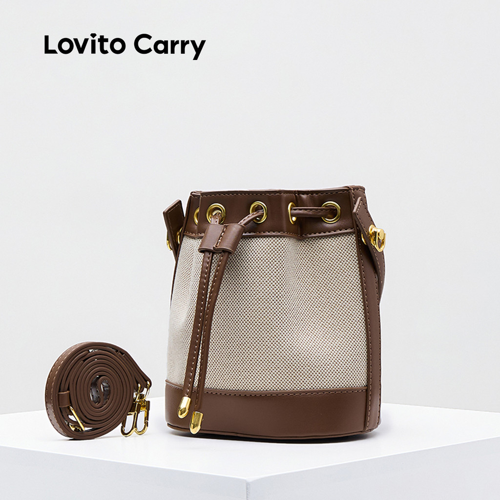 (Lovito Carry) Bolsa Saco Casual Lisa com Aplicação de Tecido LFAR9087