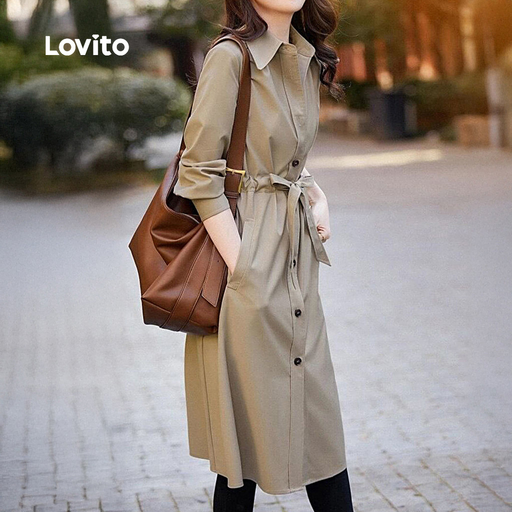 Lovito Casaco Khaki Elegante de Botão com Bolso Frontal para Outono/Inverno LNL141448
