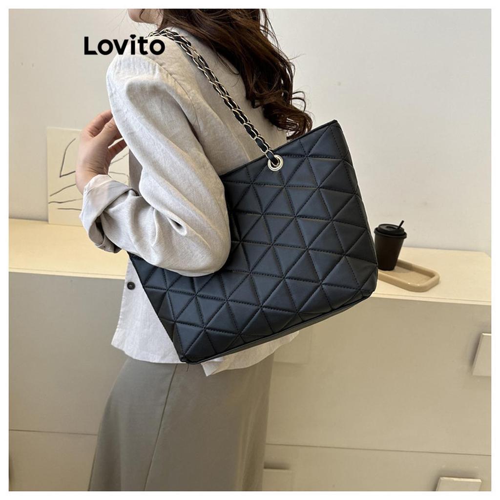 Lovito Casual Argyle Chain Acolchoado Zíper Sacola de Ombro de Grande Capacidade Bolsa para Mulheres LFA74026