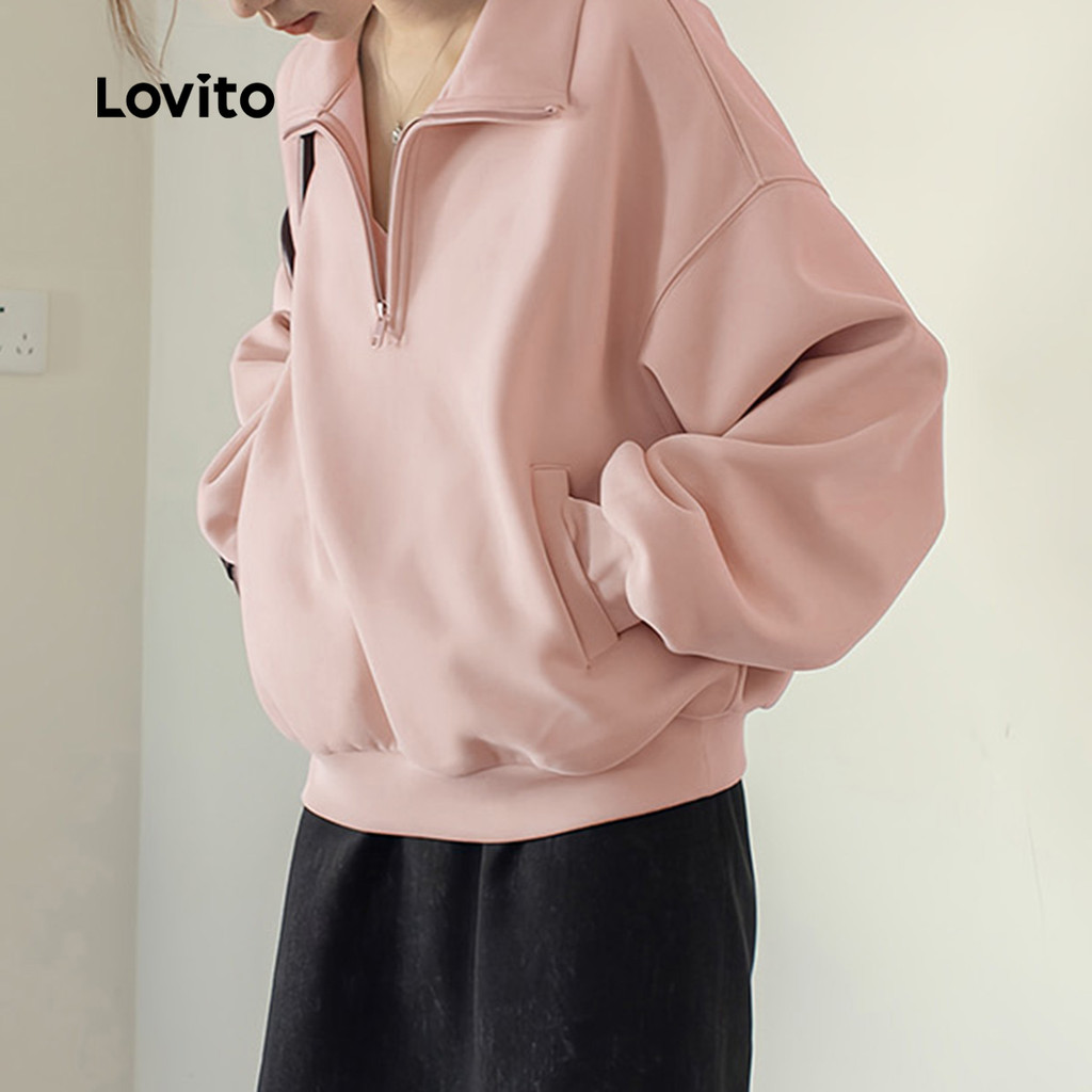 Lovito Casual Blusa de Manga Longa com Zíper e Bolso Outono/inverno Blusa Rosa para mulheres L159AD356