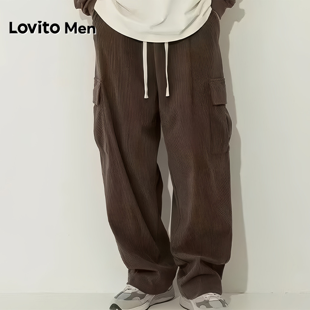 Lovito Casual Cargo Drawstring All Seasons Marrom para homens LNE127110