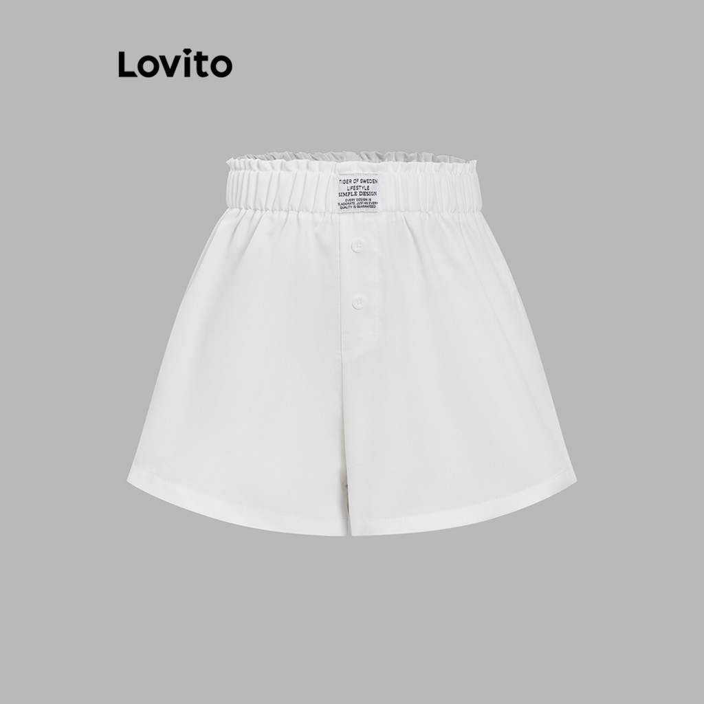 Lovito Casual Curto Listrado Botão Básico Verão/Primavera Curto Para Mulheres L105MD129