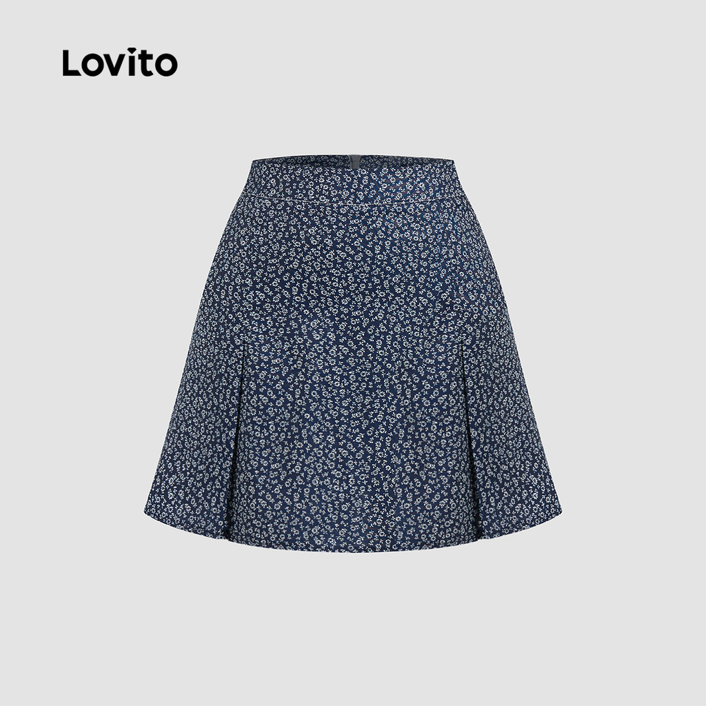 Lovito Casual Ditsy Floral Padrão Primavera/Verão Saias Azuis Para Mulheres L136AD298