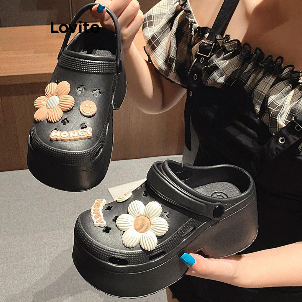 ⭐O tamanho da Lovito é CN (tamanho chinês). Por favor, escolha o tamanho adequado de acordo com o comprimento do seu pé. ✅DESTAQUES -❤️9cm -❤️ Sola macia Extra grossa Extra grossa -❤️ Margarida -❤️ Mostrar Pernas Mais Longas ✅Descrições Padrão de planície Estilo do produto: Casual Material da Caixa: Plástico + Material: Plástico Composição: 100% Plástico Região de origem: China continental ✅O pacote inclui Sandália 1X Sandália