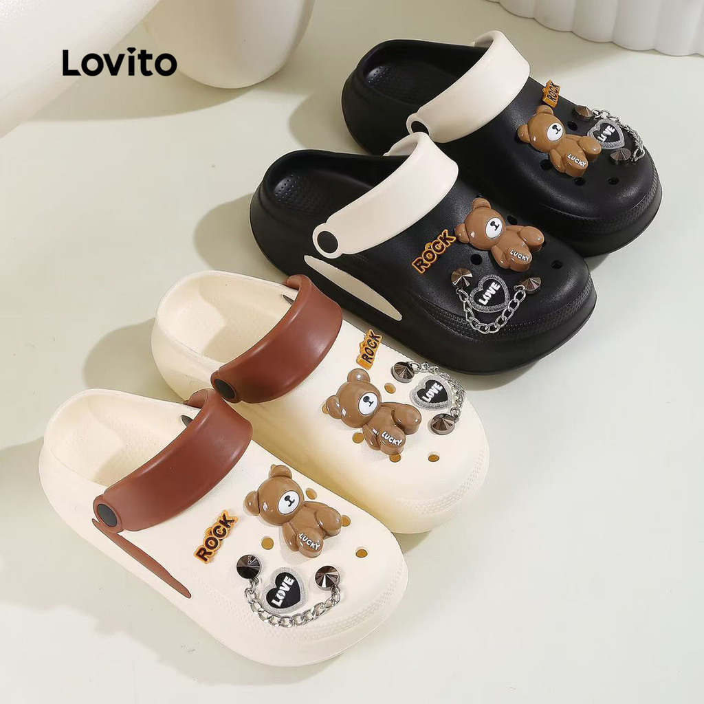 Lovito Casual Feminino Ursinho Rock Antiderrapante Solado Grosso Verão Sandália Rasteira LFA76312