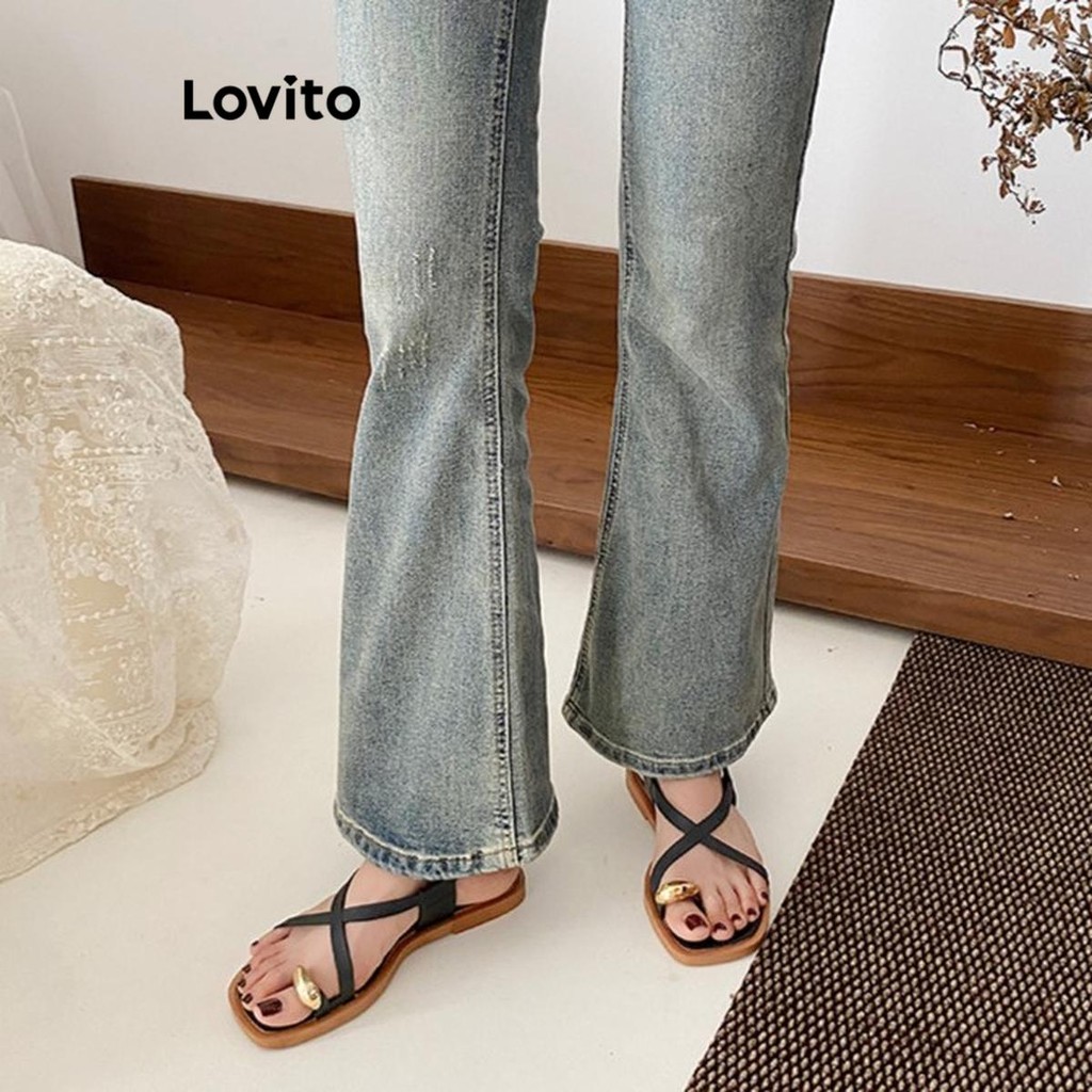 Lovito Casual Plain Criss Cross Flip Sandália Rasa Externa Para Mulheres LFA62259