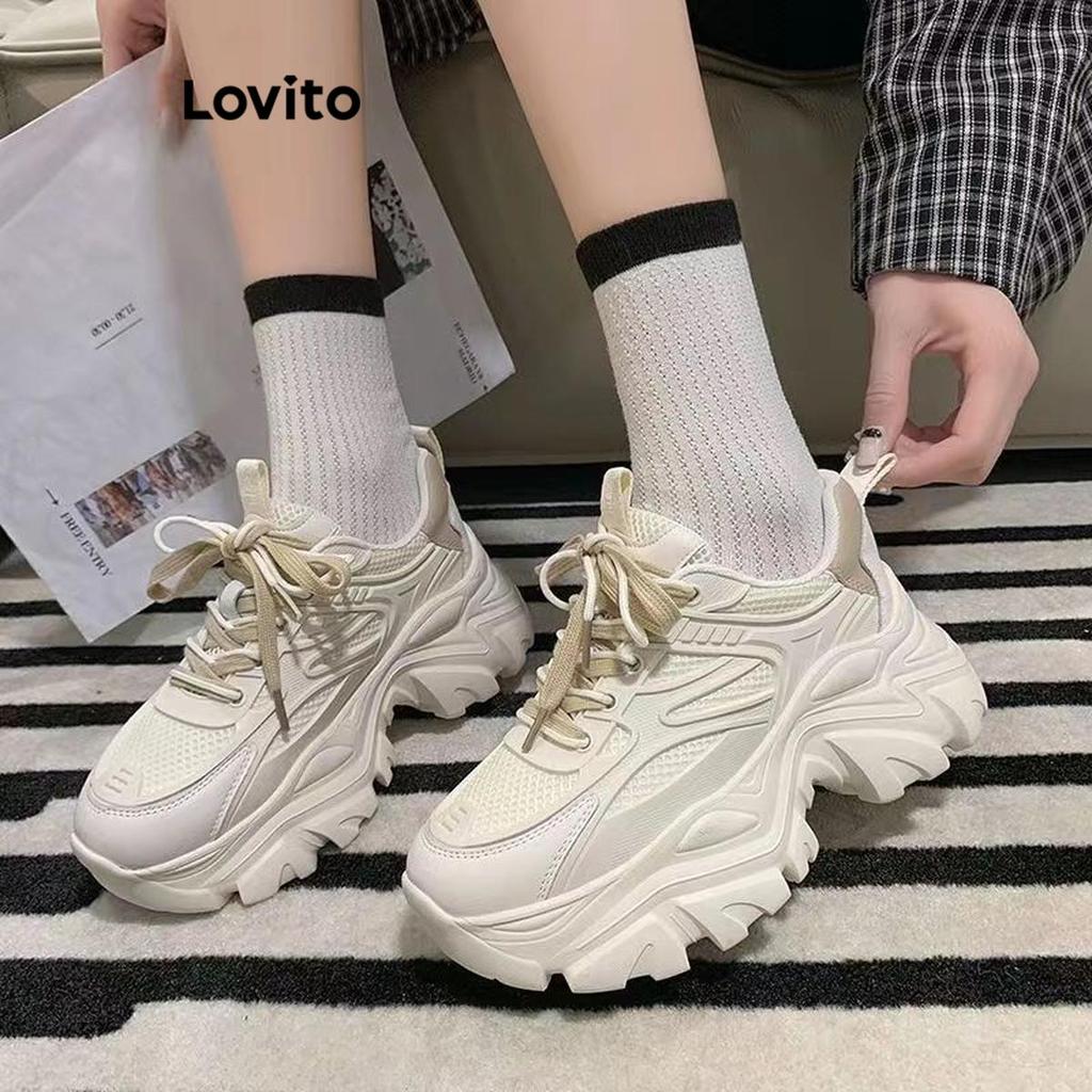 Lovito Casual simples moda sola grossa aumento de altura interna tênis Base de bolo para mulheres LFA60422