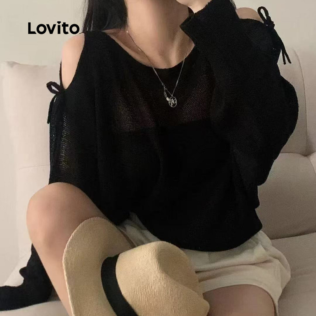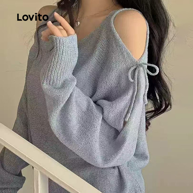 Lovito Casual Suéter Ombro Frio Confortável com Renda para Outono/inverno para mulheres LNA117013