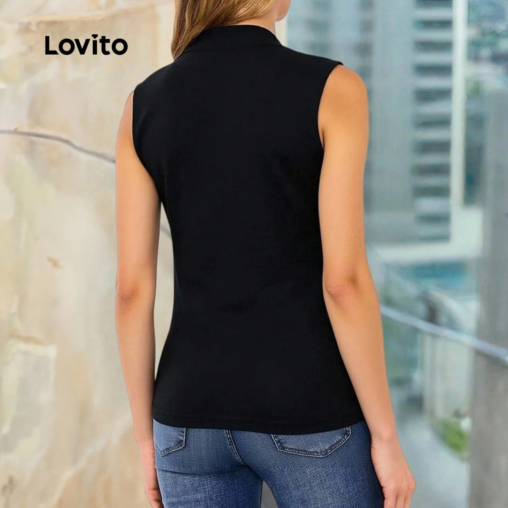 Lovito Casual Top Clássico e Versátil Top Preto de Primavera/verão para mulheres LBL31113