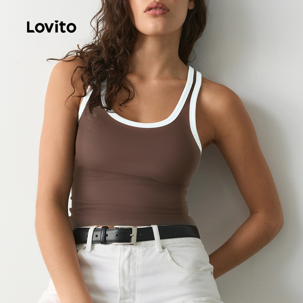 ✅DESTAQUES -❤️Cor ContrasteColorblock -❤️Macio e confortável -❤️Primavera e verão ✅DESCRIÇÕES Estampa / Padrão:Plain Estilo:Casual Tamanho Plus:No Material:Poliéster. Composição:95%Polyester+5%Elastane Tipo de modelagem:Slim Fit Transparência:No Esticar:Medium Stretch Feito na China ✅O PACOTE INCLUI 1XPrincipal ✅INTRODUÇÃO LOVITO A Lovito é uma marca em crescimento que acredita no poder das meninas. Estamos comprometidos em oferecer opções de roupas fashion e acessíveis, para todos os estilos, necessidades e identidades. Acreditamos que a moda deve ser divertida, liberadora e fazer você se sentir incrível. Afinal, o melhor acessório para qualquer look é a autoconfiança! ✅NOTAS DE COMPRA Antes de comprar, dê uma olhadinha na tabela de medidas disponível no site. Lembre-se de que, por serem feitas manualmente, as medidas podem variar de 1 a 2 cm. As cores dos produtos também podem ter pequenas diferenças em relação às fotos, dependendo da iluminação e das configurações do seu dispositivo. Siga nossa loja e conheça novos itens e as melhores ofertas para você!! Se você tiver alguma dúvida, converse conosco e responderemos o mais rápido possível.