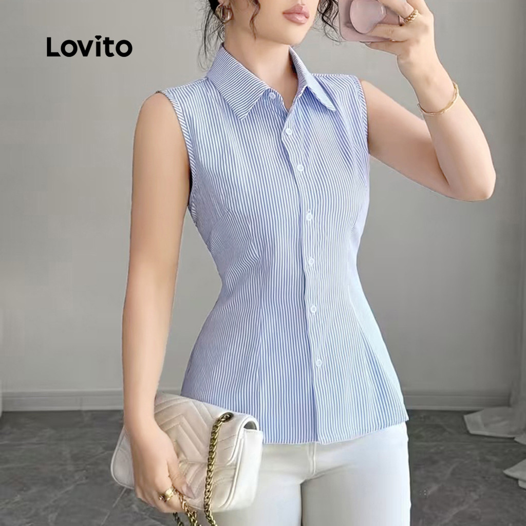 ✅DESTAQUES -❤️Recortar -❤️Curve-se de volta -❤️Botão frontal -❤️Amigável à pele e confortável -❤️Primavera e verão ✅DESCRIÇÕES Estampa / Padrão:Listrado Estilo:Casual Tamanho Plus:No Material:Poliéster Composição:95%Polyester+5%Elastane Tipo de modelagem:Slim Fit Transparência:No Esticar:Non-stretch Feito na China ✅O PACOTE INCLUI 1XPrincipal ✅INTRODUÇÃO LOVITO A Lovito é uma marca em crescimento que acredita no poder das meninas. Estamos comprometidos em oferecer opções de roupas fashion e acessíveis, para todos os estilos, necessidades e identidades. Acreditamos que a moda deve ser divertida, liberadora e fazer você se sentir incrível. Afinal, o melhor acessório para qualquer look é a autoconfiança! ✅NOTAS DE COMPRA Antes de comprar, dê uma olhadinha na tabela de medidas disponível no site. Lembre-se de que, por serem feitas manualmente, as medidas podem variar de 1 a 2 cm. As cores dos produtos também podem ter pequenas diferenças em relação às fotos, dependendo da iluminação e das configurações do seu dispositivo. Siga nossa loja e conheça novos itens e as melhores ofertas para você!! Se você tiver alguma dúvida, converse conosco e responderemos o mais rápido possível.