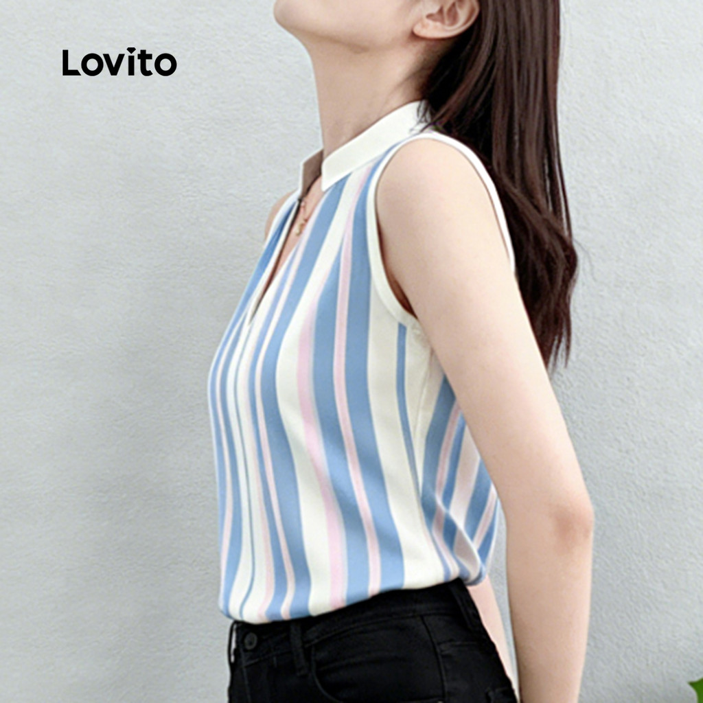✅DESTAQUES -❤️Padrão -❤️LazerLazer -❤️Fresco e ConfortávelFresco e Confortável -❤️Primavera e verão ✅DESCRIÇÕES Estampa / Padrão:Listrado Estilo:Casual Tamanho Plus:No Material:Poliéster Composição:100%Polyester Tipo de modelagem:Regular Fit Transparência:No Esticar:Non-stretch Feito na China ✅O PACOTE INCLUI 1XPrincipal ✅INTRODUÇÃO LOVITO A Lovito é uma marca em crescimento que acredita no poder das meninas. Estamos comprometidos em oferecer opções de roupas fashion e acessíveis, para todos os estilos, necessidades e identidades. Acreditamos que a moda deve ser divertida, liberadora e fazer você se sentir incrível. Afinal, o melhor acessório para qualquer look é a autoconfiança! ✅NOTAS DE COMPRA Antes de comprar, dê uma olhadinha na tabela de medidas disponível no site. Lembre-se de que, por serem feitas manualmente, as medidas podem variar de 1 a 2 cm. As cores dos produtos também podem ter pequenas diferenças em relação às fotos, dependendo da iluminação e das configurações do seu dispositivo. Siga nossa loja e conheça novos itens e as melhores ofertas para você!! Se você tiver alguma dúvida, converse conosco e responderemos o mais rápido possível.