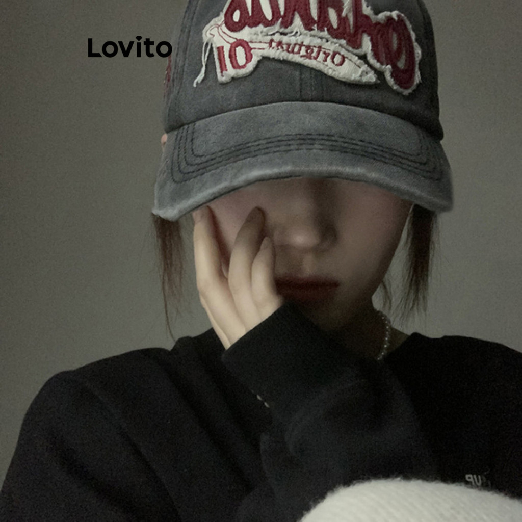 Lovito Chapéu Casual Com Letras Lavadas Americanas Retrô Com Buracos Desgastados Chapéus Y2K Para Mulheres LFA12557