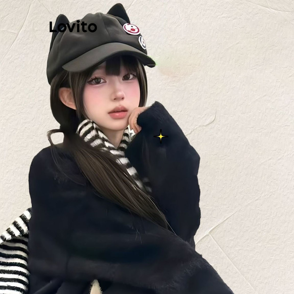 Lovito Chapéu Casual Com Orelhas De Gato Lisas Eva Chapéu Fofo Para Mulheres LFA42217