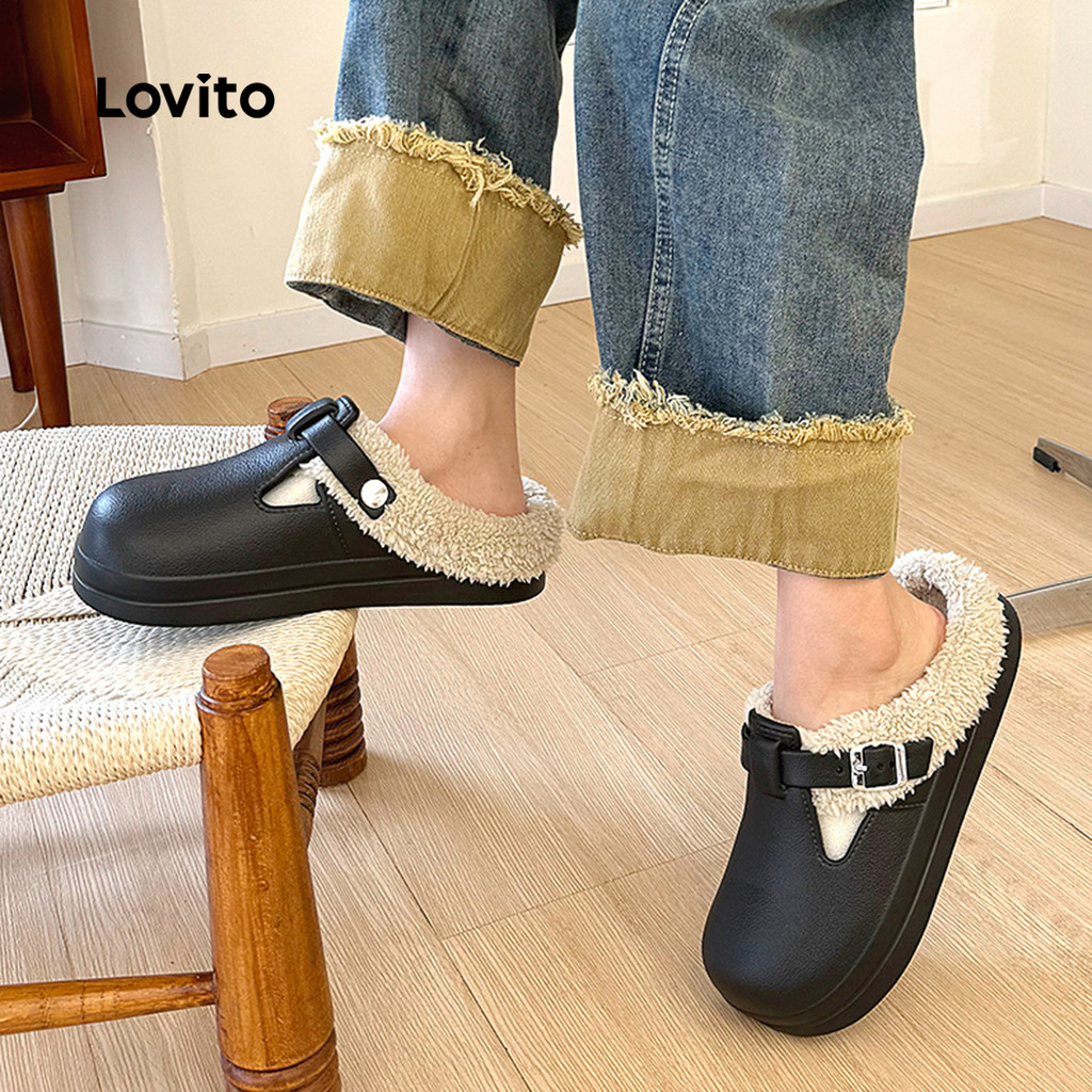 Lovito Chinelos de Pelúcia Casuais para Mulheres em português LFAS4016