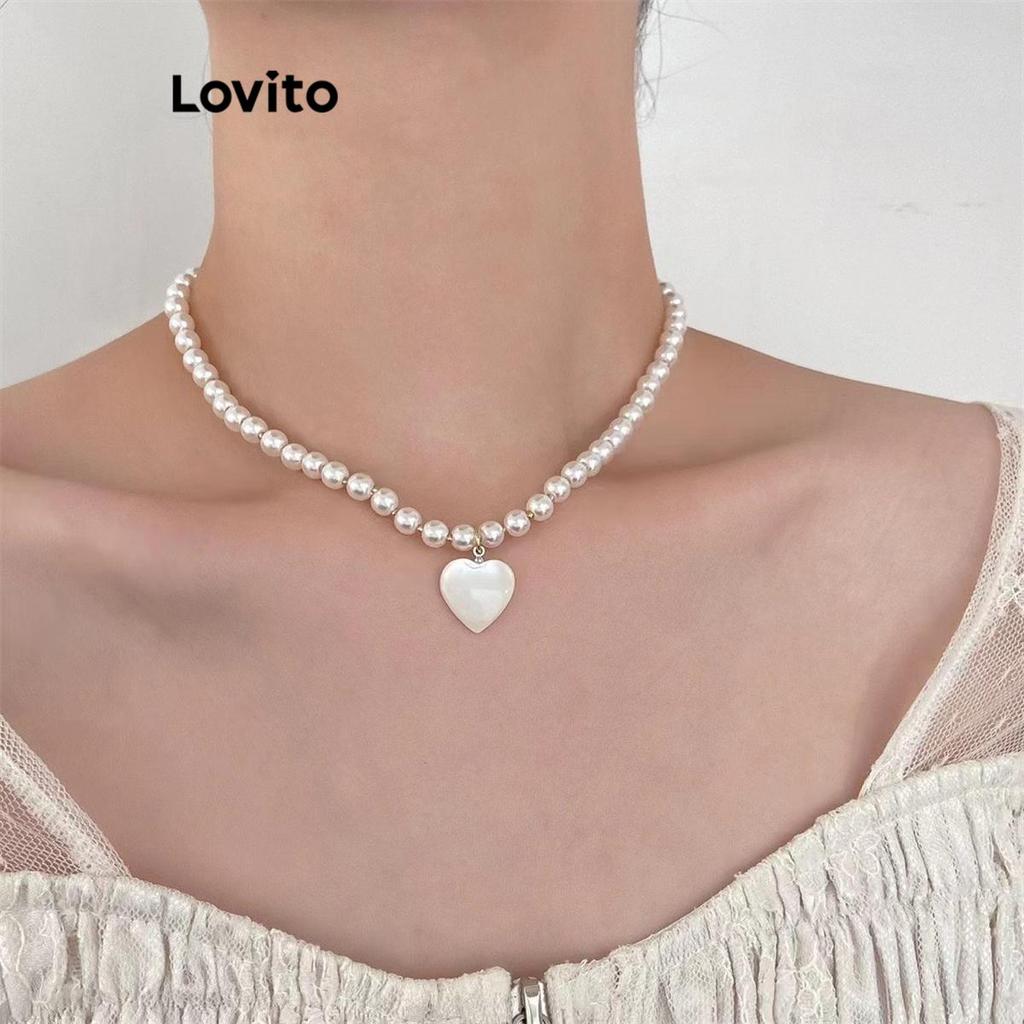 Lovito Colares casuais de pérolas em forma de coração para mulheres LFA30347