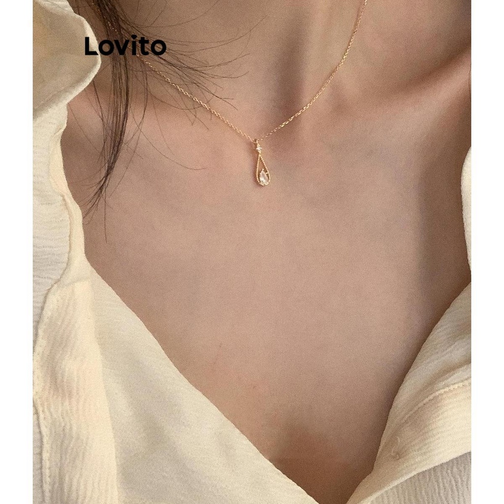 Lovito Colares Elegantes Corrente Lisa Strass Gotas De Água Colares De Temperamento Francês Para Mulheres LFA09627