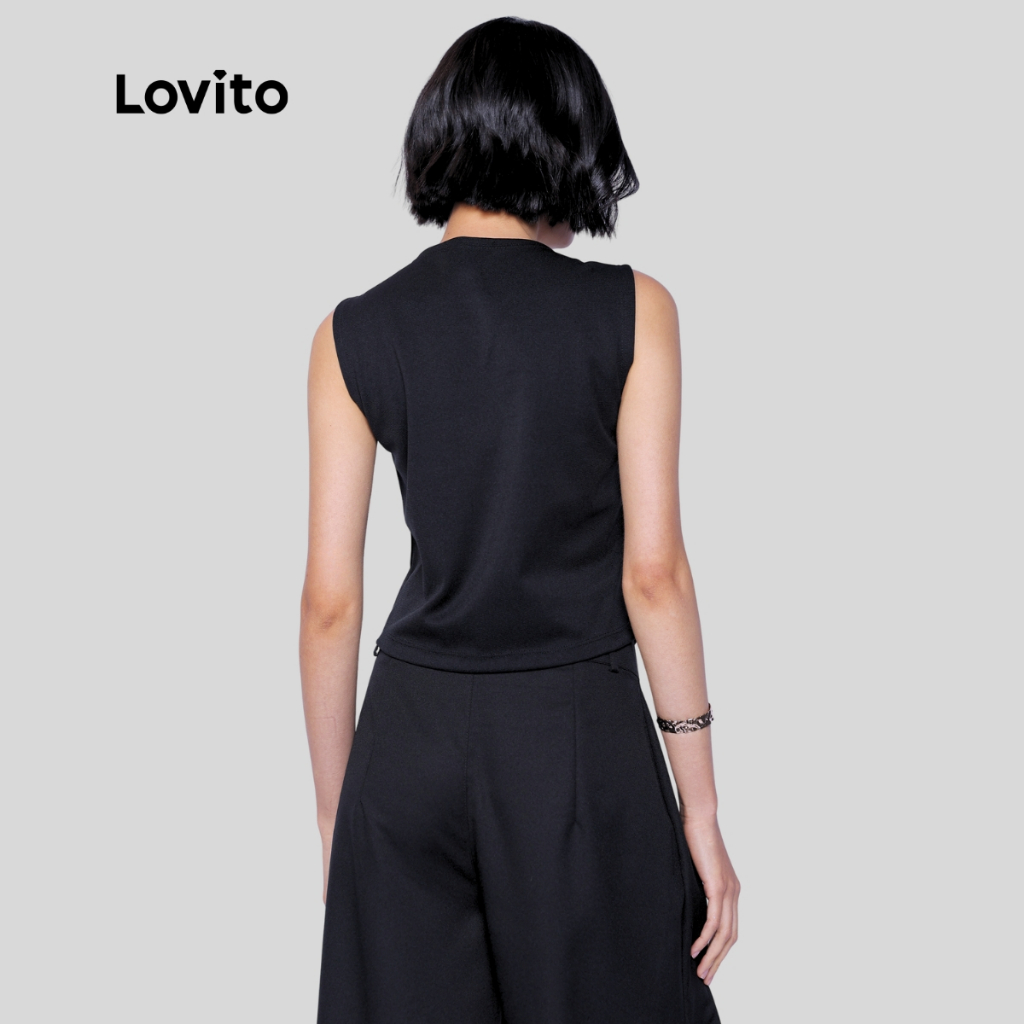 Lovito Colete Alfaiataria Elegante Preto com Botões Feminina LB790BRL820
