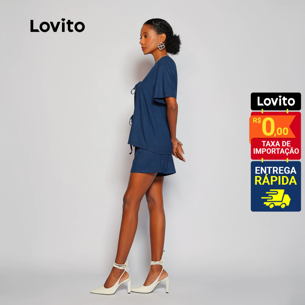 ✅DESTAQUES -❤️Amarração Frontal -❤️Fresco e Confortável ✅DESCRIÇÕES Estampa: Lisa Estilo: Casual Tamanho Plus: Não Composição: 97,5 Viscose 2,5% Elastano Tipo de Caimento: Regular Transparência: Não Elasticidade: Médio Região de Origem: Brasil ✅O PACOTE INCLUI 1 Conjunto ✅INTRODUÇÃO À LOVITO A Lovito é uma marca emergente que acredita no poder feminino, comprometida em oferecer opções de roupas elegantes e acessíveis para diferentes estilos, necessidades e identidades. Acreditamos que a moda deve ser divertida, libertadora e fazer você se sentir bem. Afinal, o melhor acessório para qualquer look é a autoconfiança. ✅NOTAS DE COMPRA Compare suas medidas com nossa tabela disponível no site. Lembre-se de que, por serem feitas manualmente, as medidas podem variar de 1 a 2 cm. As cores dos produtos também podem ter pequenas diferenças em relação às fotos, dependendo da iluminação e das configurações do seu dispositivo. Siga nossa loja e conheça novos itens e as melhores ofertas para você!! Se você tiver alguma dúvida, converse conosco e responderemos o mais rápido possível.😊