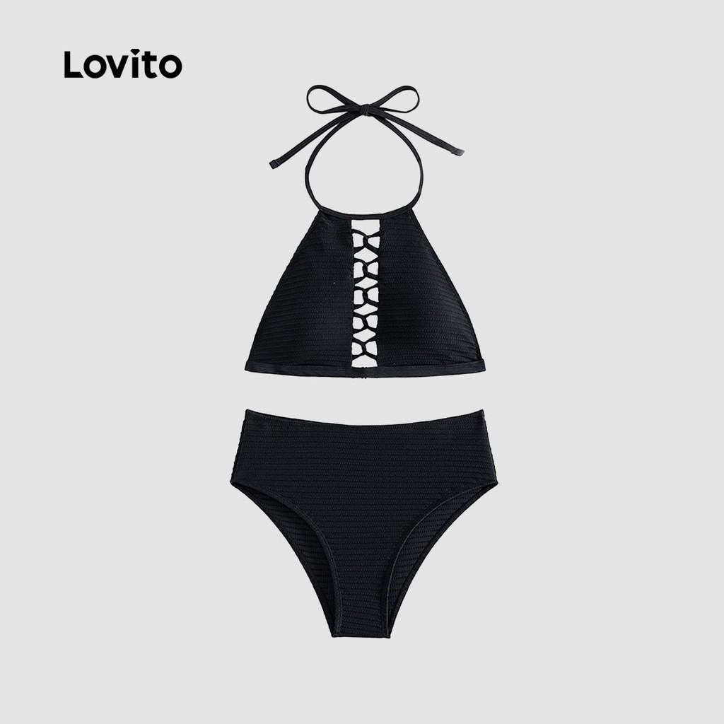 ✅DESTAQUES -❤️Amarrar para trás -❤️Criss Cross -❤️Plicado -❤️Exótico -❤️Textura Delicada -❤️Primavera e verão -❤️Alça ajustável ✅DESCRIÇÕES Estampa / Padrão:Plain Estilo:Sexy Material: Poliéster Composição:95%Polyester+5%Spandex Tipo de modelagem: Slim Fit Transparência:No Esticar:Medium Stretch Feito na China ✅O PACOTE INCLUI 1XConjuntos de biquíni ✅INTRODUÇÃO LOVITO A Lovito é uma marca em crescimento que acredita no poder das meninas. Estamos comprometidos em oferecer opções de roupas fashion e acessíveis, para todos os estilos, necessidades e identidades. Acreditamos que a moda deve ser divertida, liberadora e fazer você se sentir incrível. Afinal, o melhor acessório para qualquer look é a autoconfiança! ✅NOTAS DE COMPRA Antes de comprar, dê uma olhadinha na tabela de medidas disponível no site. Lembre-se de que, por serem feitas manualmente, as medidas podem variar de 1 a 2 cm. As cores dos produtos também podem ter pequenas diferenças em relação às fotos, dependendo da iluminação e das configurações do seu dispositivo. Siga nossa loja e conheça novos itens e as melhores ofertas para você!! Se você tiver alguma dúvida, converse conosco e responderemos o mais rápido possível.😊