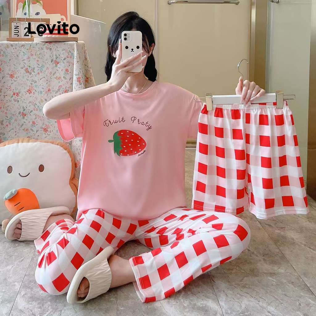 Lovito Conjunto De Pijama Casual De 3 Peças Dia a Dia Composto Por Blusa Calça E Shorts Para Mulheres LNE134047