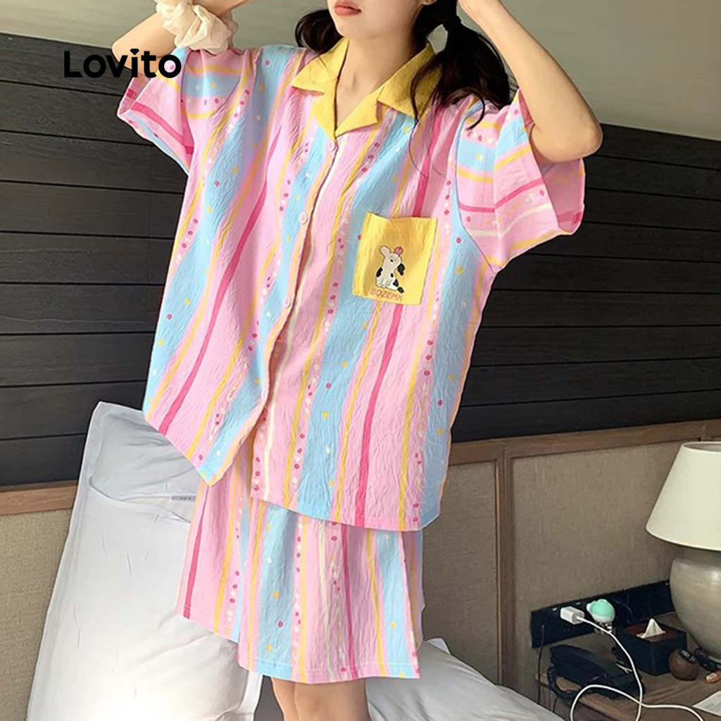 ✅Destaques -❤️Estampa -❤️Colorblock -❤️Fresco E Confortável -❤️Primavera E Verão ✅Descrições Estampa: Listra Estilo: Bonito Tamanho Plus Size: Não Material: Poliéster Composição: 100% Poliéster Tipo De Caimento: Solto Transparência: Não Elasticidade: Não Elástica Região De Origem: China Continental ✅O Pacote Inclui 1 Conjunto De Pijama ✅Introdução À Lovito A Lovito É Uma Marca Emergente Que Acredita No Poder Feminino, Comprometida Em Oferecer Opções De Roupas Elegantes E Acessíveis Para Diferentes Estilos, Necessidades E Identidades. Acreditamos Que A Moda Deve Ser Divertida, Libertadora E Fazer Você Se Sentir Bem. Afinal, O Melhor Acessório Para Qualquer Look É A Autoconfiança. ✅Notas De Compra Consulte A Tabela De Tamanhos Antes De Comprar. Pode Haver Uma Pequena Diferença Devido À Medição Manual. Todas As Fotos Dos Produtos Nesta Loja São Fotos Reais. Devido À Iluminação E Às Diferenças De Tela, Pequenas Variações Na Cor E No Produto Podem Ser Normais. Siga Nossa Loja E Descubra Novos Itens E As Melhores Ofertas Para Você!! Se Tiver Alguma Dúvida Ou Problema, Sinta-Se À Vontade Para Nos Enviar Uma Mensagem.😊