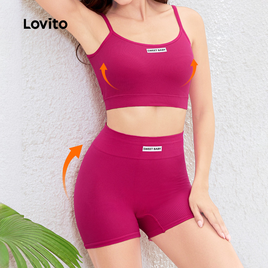 ✅DESTAQUES -❤️Padrão -❤️Costela tricotada -❤️esportes ao ar livre -❤️Macio e confortável -❤️Primavera e verão ✅DESCRIÇÕES Estampa / Padrão:Carta Estilo:Esportivo Ocasião:Caminhada Academia Múeiô Ciclismo Corrida Condicionamento físico Ioga Material:Poliéster Composição:95%Poliéster+5%Spandex Tipo de modelagem:Justo ao corpo Transparência:Não Esticar:Não esticável Feito na China ✅O PACOTE INCLUI 1XConjunto esportivo ✅INTRODUÇÃO LOVITO A Lovito é uma marca em crescimento que acredita no poder das meninas. Estamos comprometidos em oferecer opções de roupas fashion e acessíveis, para todos os estilos, necessidades e identidades. Acreditamos que a moda deve ser divertida, liberadora e fazer você se sentir incrível. Afinal, o melhor acessório para qualquer look é a autoconfiança! ✅NOTAS DE COMPRA Antes de comprar, dê uma olhadinha na tabela de medidas disponível no site. Lembre-se de que, por serem feitas manualmente, as medidas podem variar de 1 a 2 cm. As cores dos produtos também podem ter pequenas diferenças em relação às fotos, dependendo da iluminação e das configurações do seu dispositivo. Siga nossa loja e conheça novos itens e as melhores ofertas para você!! Se você tiver alguma dúvida, converse conosco e responderemos o mais rápido possível.😊