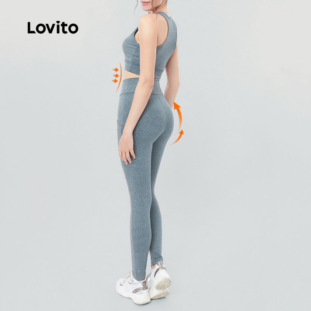 Lovito Conjunto Feminino Esportivo Top e Legging com Bolso LB319BRL348