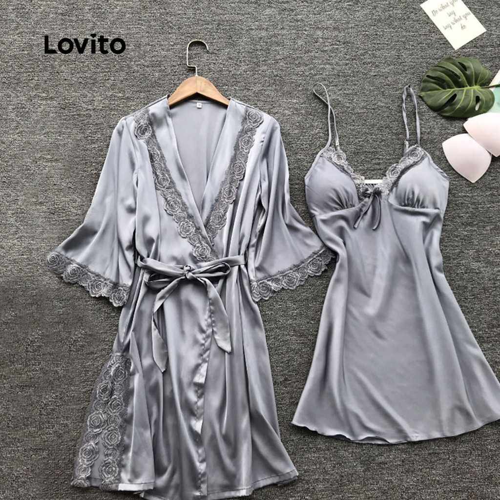 ✅DESTAQUES -❤️Pacote de 2 combinados -❤️Renda -❤️Roupas diurnas para agasalhos -❤️Roupa de lazer -❤️Sensação de mão suave -❤️Primavera e verão ✅DESCRIÇÕES Estampa / Padrão:Plain Estilo:Sexy. Tamanho Plus:No Material:Poliéster Composição:100%Polyester Tipo de modelagem:Regular Fit Transparência:No Esticar:Non-stretch Feito na China ✅O PACOTE INCLUI 1XRobe ✅INTRODUÇÃO LOVITO A Lovito é uma marca em crescimento que acredita no poder das meninas. Estamos comprometidos em oferecer opções de roupas fashion e acessíveis, para todos os estilos, necessidades e identidades. Acreditamos que a moda deve ser divertida, liberadora e fazer você se sentir incrível. Afinal, o melhor acessório para qualquer look é a autoconfiança! ✅NOTAS DE COMPRA Antes de comprar, dê uma olhadinha na tabela de medidas disponível no site. Lembre-se de que, por serem feitas manualmente, as medidas podem variar de 1 a 2 cm. As cores dos produtos também podem ter pequenas diferenças em relação às fotos, dependendo da iluminação e das configurações do seu dispositivo. Siga nossa loja e conheça novos itens e as melhores ofertas para você!! Se você tiver alguma dúvida, converse conosco e responderemos o mais rápido possível.