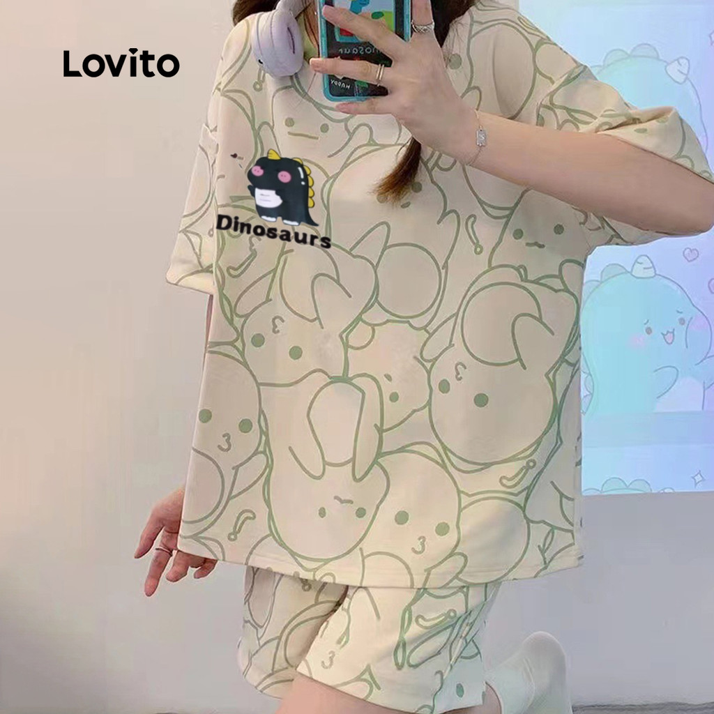 Lovito Conjunto Pijama Coreano Algodão 2 Peças Confortável Uso Externo LNE113171