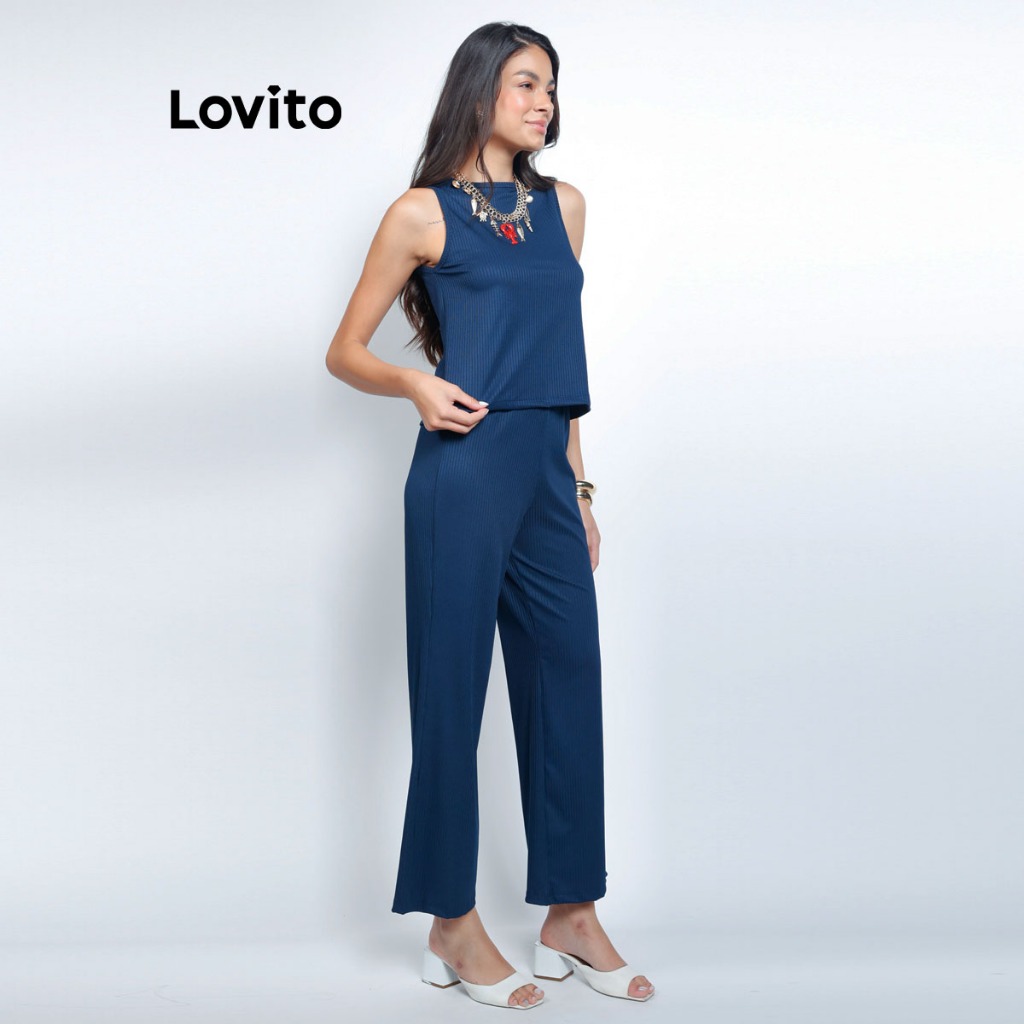 Lovito Conjunto Top e Calça Longa Moda Confortavel Feminino Outono BRPSB643BRL673