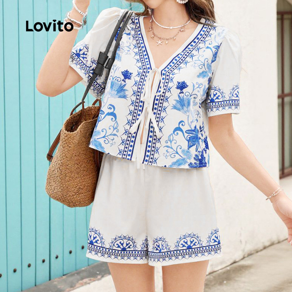 Lovito Conjuntos Boho De Blusas E Calças Para a Primavera/verão Para Mulheres L157ED390