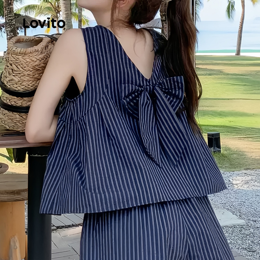 ✅DESTAQUES -❤️Geométrico -❤️Macio e confortável -❤️Primavera e verão ✅DESCRIÇÕES Estampa / Padrão:Listrado Estilo:Tranquilo Tamanho Plus:Não Material:Poliéster Composição:100% Poliéster Tipo de modelagem: Corte Regular Transparência:Não Esticar:Não estendido Feito na China ✅REFERÊNCIA DE MODELAGEM A modelo está vestindo: P Altura: 165 cm Peso: 55 kg Busto: 88 cm Cintura: 68 cm Quadris: 93 cm ✅O PACOTE INCLUI 1XConjuntos de shorts ✅INTRODUÇÃO LOVITO A Lovito é uma marca em crescimento que acredita no poder das meninas. Estamos comprometidos em oferecer opções de roupas fashion e acessíveis, para todos os estilos, necessidades e identidades. Acreditamos que a moda deve ser divertida, liberadora e fazer você se sentir incrível. Afinal, o melhor acessório para qualquer look é a autoconfiança! ✅NOTAS DE COMPRA Antes de comprar, dê uma olhadinha na tabela de medidas disponível no site. Lembre-se de que, por serem feitas manualmente, as medidas podem variar de 1 a 2 cm. As cores dos produtos também podem ter pequenas diferenças em relação às fotos, dependendo da iluminação e das configurações do seu dispositivo. Siga nossa loja e conheça novos itens e as melhores ofertas para você!! Se você tiver alguma dúvida, converse conosco e responderemos o mais rápido possível.😊