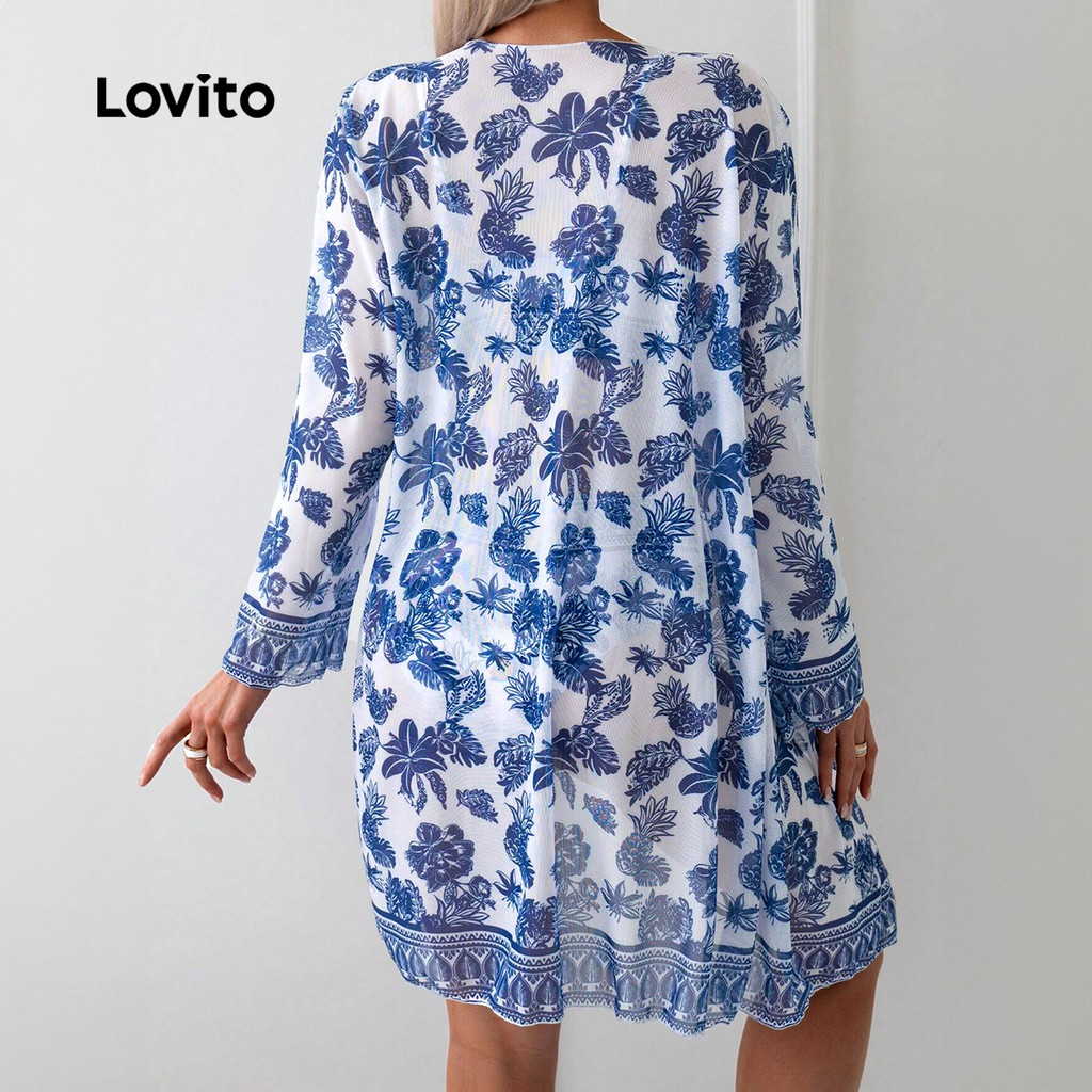 Lovito Conjuntos de Biquíni Boho Azul para Primavera/Verão Mulheres LBL30221