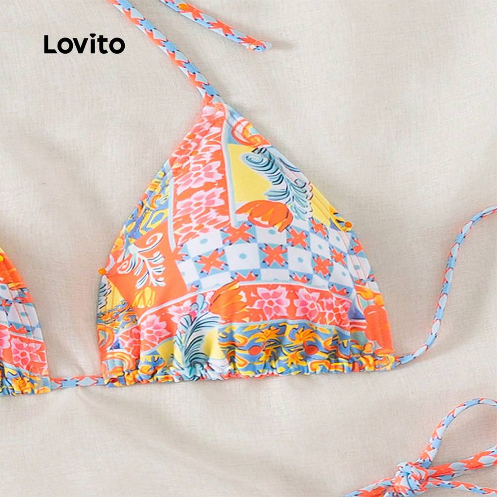 ✅DESTAQUES -❤️Amarrar -❤️Padrão -❤️Exótico -❤️Textura Delicada -❤️Primavera e verão -❤️Alça ajustável ✅DESCRIÇÕES Estampa / Padrão:Tropical Estilo:Sexy Material: Poliéster Composição:95%Polyester+5%Spandex Tipo de modelagem: Slim Fit em português é Slim Fit Transparência:No Esticar:Medium Stretch Feito na China ✅O PACOTE INCLUI 1XConjuntos de biquíni ✅INTRODUÇÃO LOVITO A Lovito é uma marca em crescimento que acredita no poder das meninas. Estamos comprometidos em oferecer opções de roupas fashion e acessíveis, para todos os estilos, necessidades e identidades. Acreditamos que a moda deve ser divertida, liberadora e fazer você se sentir incrível. Afinal, o melhor acessório para qualquer look é a autoconfiança! ✅NOTAS DE COMPRA Antes de comprar, dê uma olhadinha na tabela de medidas disponível no site. Lembre-se de que, por serem feitas manualmente, as medidas podem variar de 1 a 2 cm. As cores dos produtos também podem ter pequenas diferenças em relação às fotos, dependendo da iluminação e das configurações do seu dispositivo. Siga nossa loja e conheça novos itens e as melhores ofertas para você!! Se você tiver alguma dúvida, converse conosco e responderemos o mais rápido possível.😊