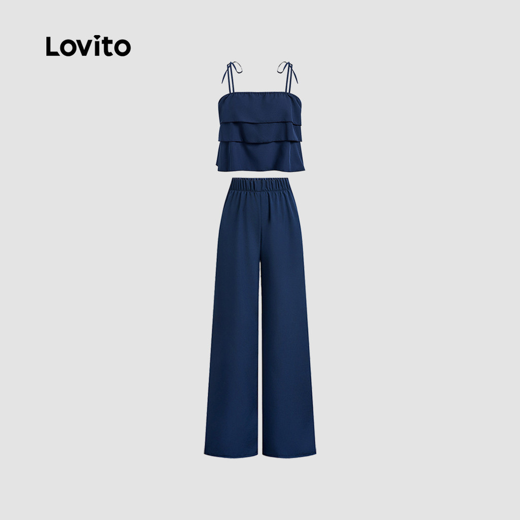 Lovito Conjuntos De Calças E Blusas Casuais Com Babados Para a Primavera/verão L143ED251