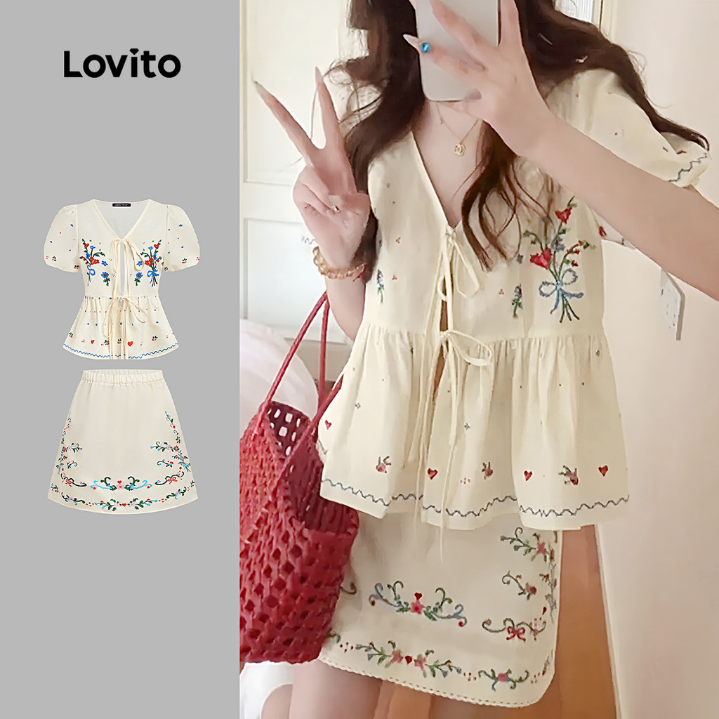 Lovito Conjuntos de Saia Casuais para Primavera/verão para mulheres L157ED388