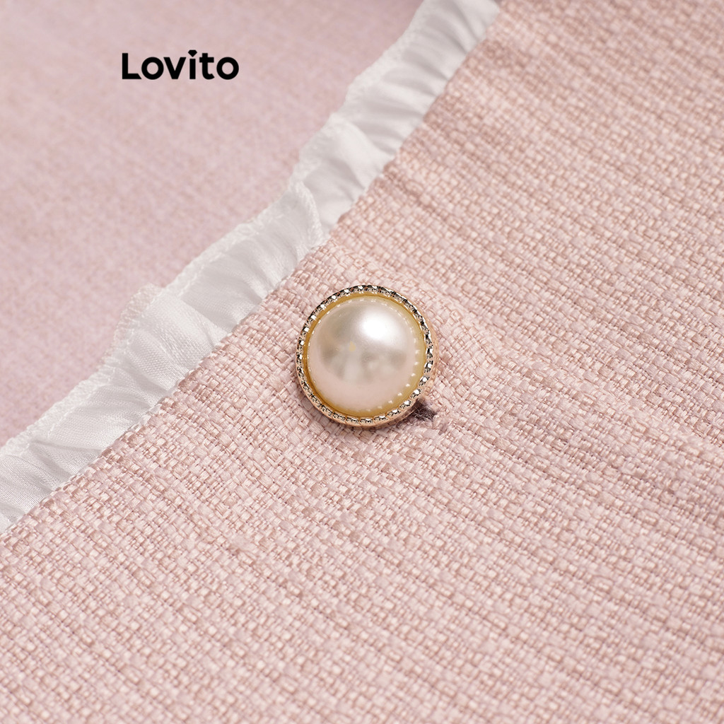 Lovito Conjuntos De Saia Casual Lisa Plissada Com Botões Frontais Ou Calças Para Mulheres LNM79416