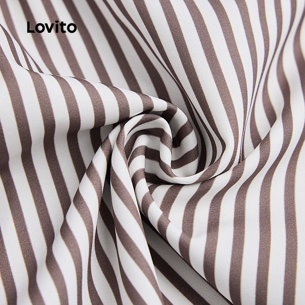 ✅DESTAQUES -❤️BotãoBotão -❤️Macio e confortável -❤️Primavera e verão ✅DESCRIÇÕES Estampa / Padrão:Listrado Estilo:Casual Tamanho Plus:No Material:Poliéster Composição:100%Polyester Tipo de modelagem:Regular Fit Transparência:No Esticar:Non-stretch Feito na China ✅O PACOTE INCLUI 1XConjuntos de shorts ✅INTRODUÇÃO LOVITO A Lovito é uma marca em crescimento que acredita no poder das meninas. Estamos comprometidos em oferecer opções de roupas fashion e acessíveis, para todos os estilos, necessidades e identidades. Acreditamos que a moda deve ser divertida, liberadora e fazer você se sentir incrível. Afinal, o melhor acessório para qualquer look é a autoconfiança! ✅NOTAS DE COMPRA Antes de comprar, dê uma olhadinha na tabela de medidas disponível no site. Lembre-se de que, por serem feitas manualmente, as medidas podem variar de 1 a 2 cm. As cores dos produtos também podem ter pequenas diferenças em relação às fotos, dependendo da iluminação e das configurações do seu dispositivo. Siga nossa loja e conheça novos itens e as melhores ofertas para você!! Se você tiver alguma dúvida, converse conosco e responderemos o mais rápido possível.😊