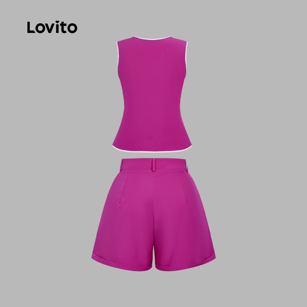 Lovito Conjuntos Elegantes de Shorts com Acabamento em Contraste Bolso Primavera/verão Vermelho rosa L143ED537