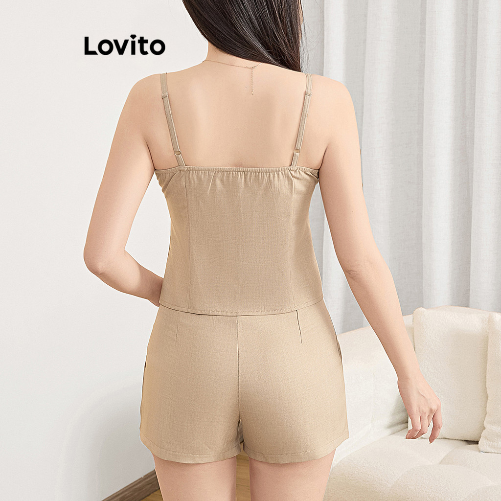 Lovito Conjuntos Shorts Casuais Gravata Frontal Laço Drapeado Conjuntos Shorts Verão/Primavera Para Mulheres L121AD1241
